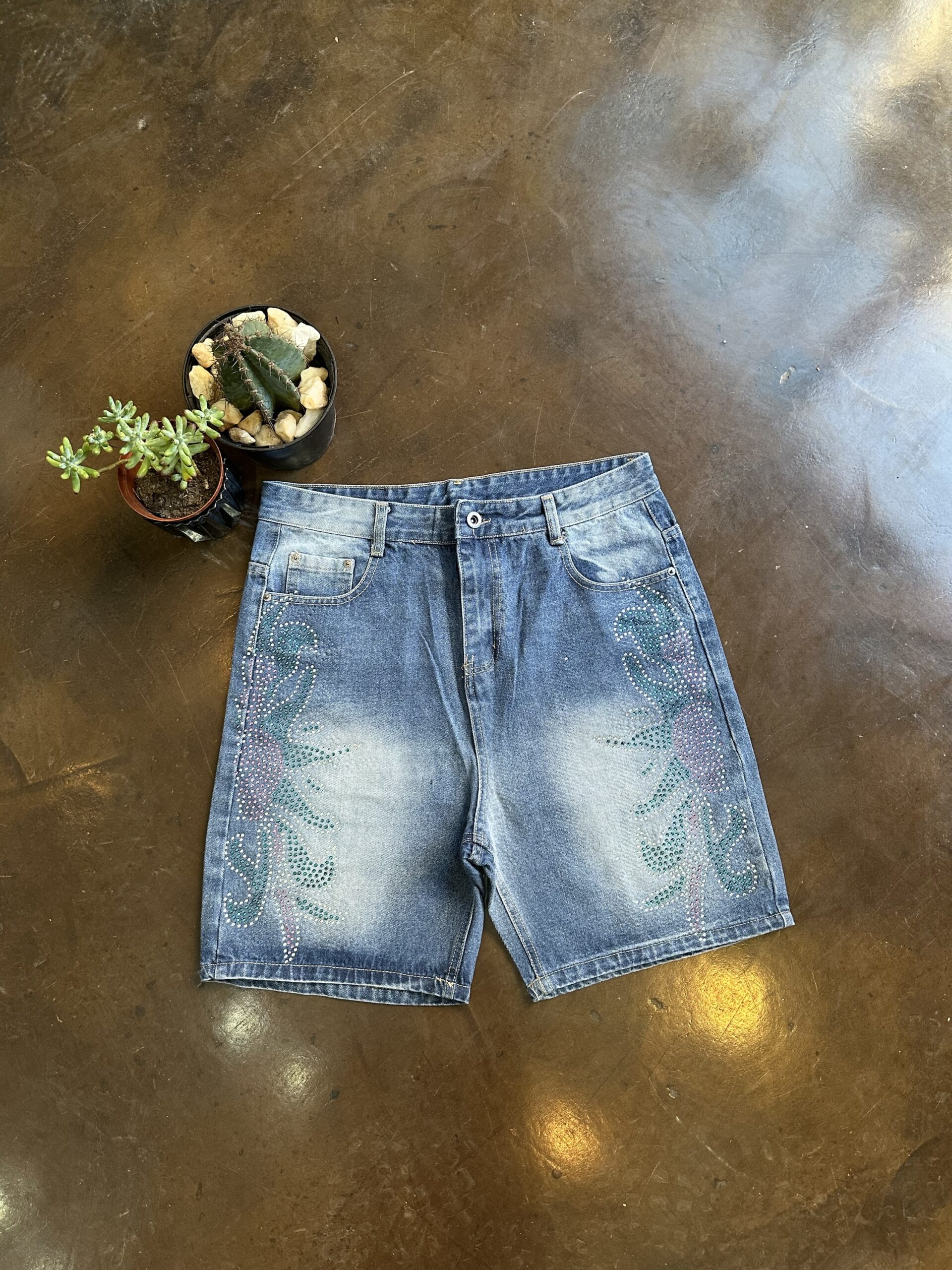 Be the first to review “Rhinestone Denim Jorts 34”