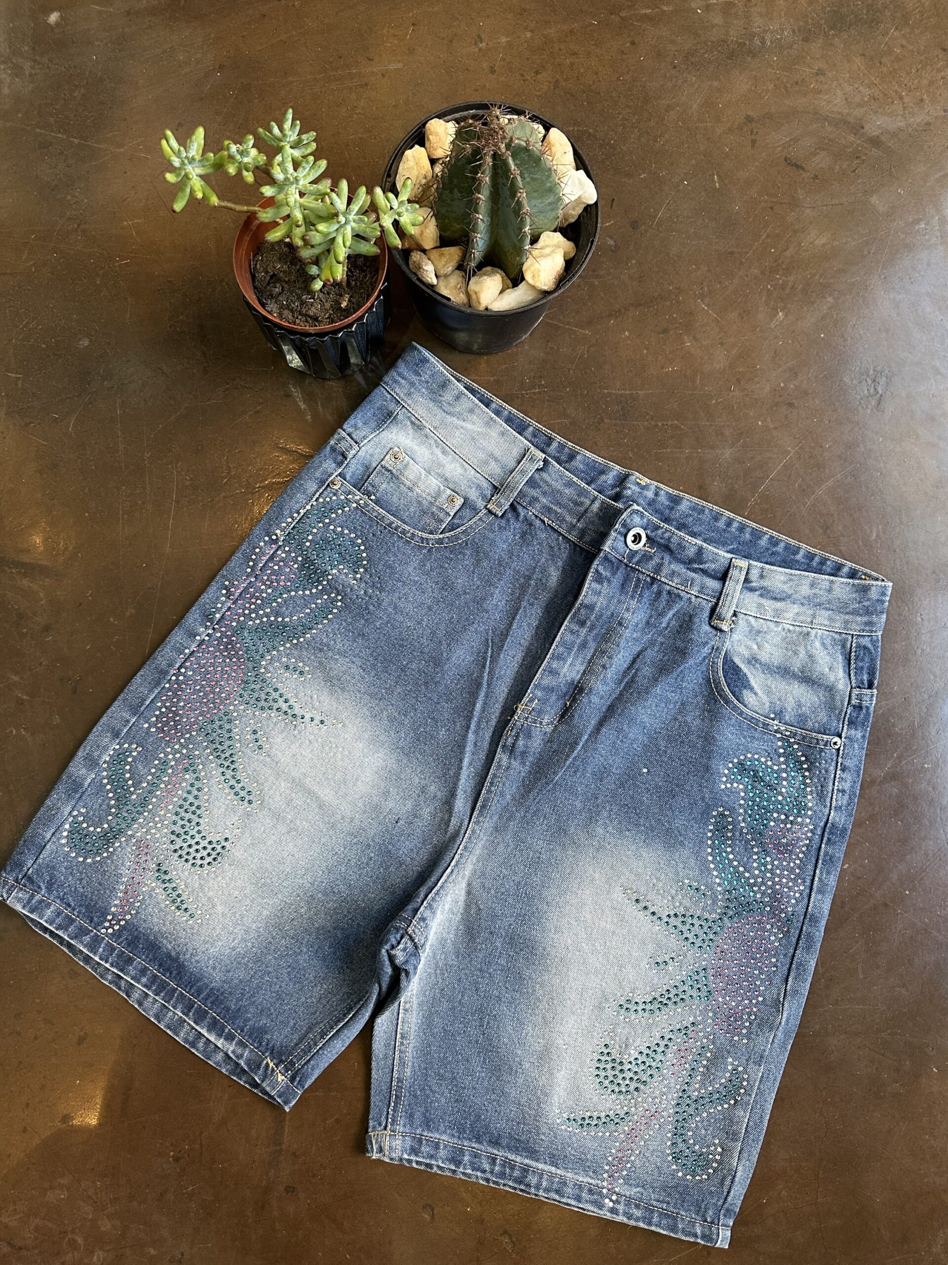 Rhinestone Denim Jorts – 32-34